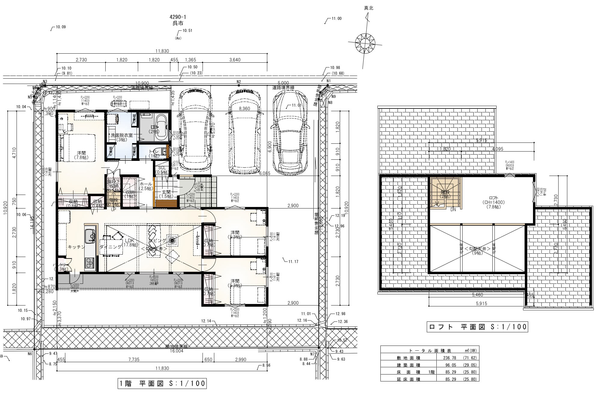 | 建物面積 | 85.29㎡ (25.80坪) | 土地面積 | 公簿 236.78㎡ (71.62坪) |